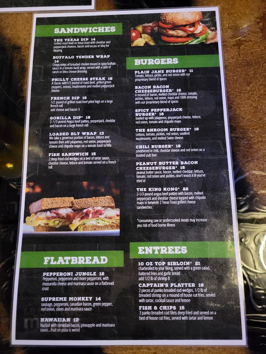 The Monkey Bar Menu